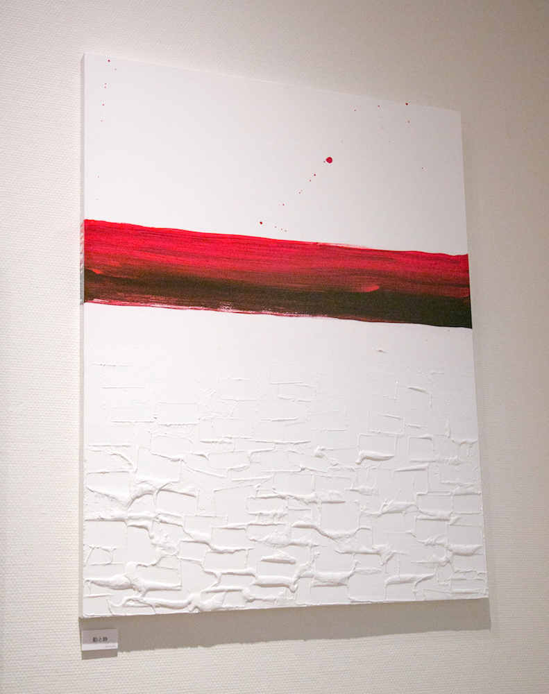 | Statement/note 水がひたひたと満ち満ち、 光が静かに降りてきて交差する様。 目を閉じて見えてくる形。 外から見ると静なるものも、 見えないところで深々と動き、潤いをたたえている。 4人展『カルテット』に向けて描かれた作品。 このときはカルテットの曲に合わせ、 4人が作品を制作したのだが、 この作品はG線上のアリアを聞きながら描いた作品。 |