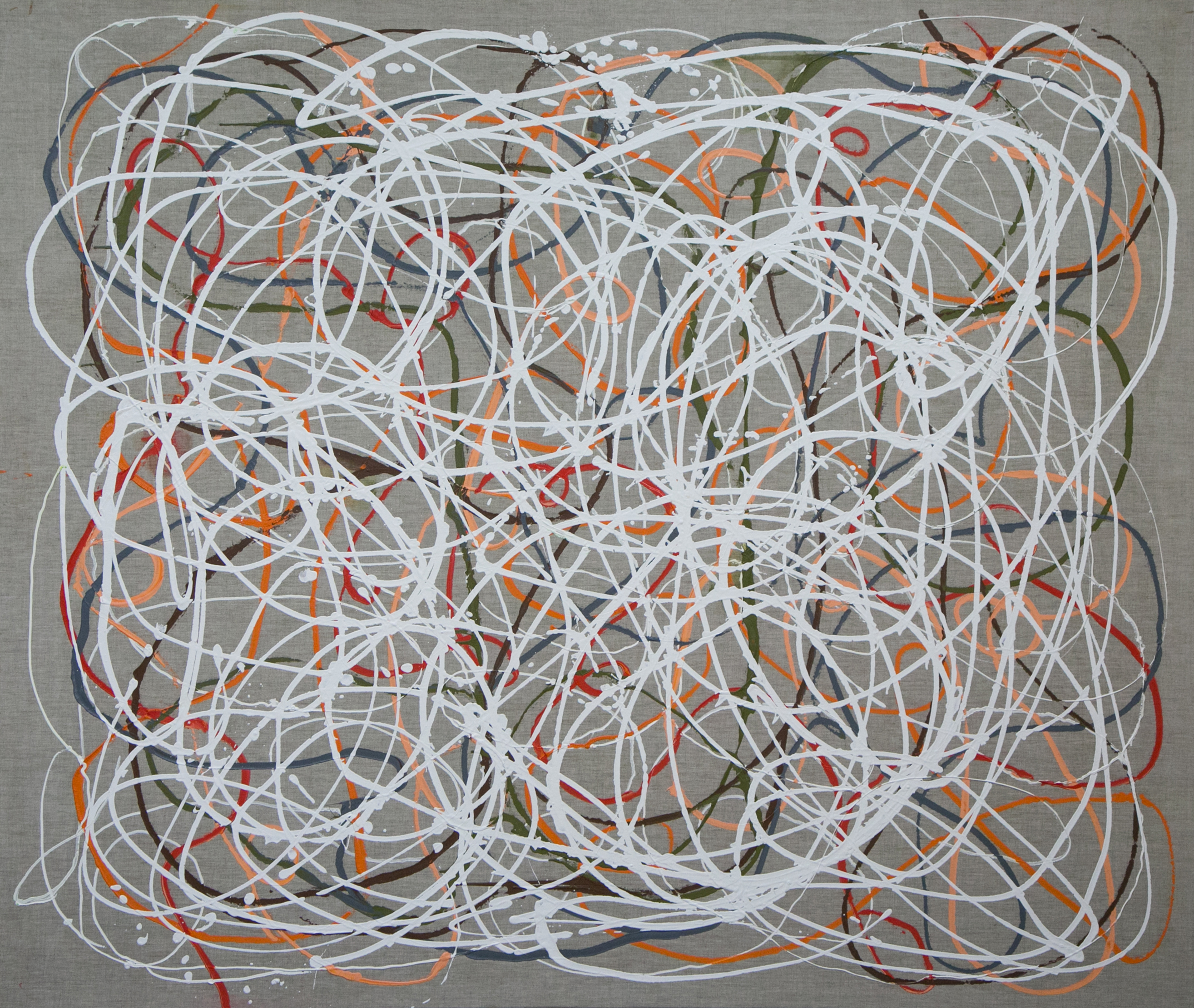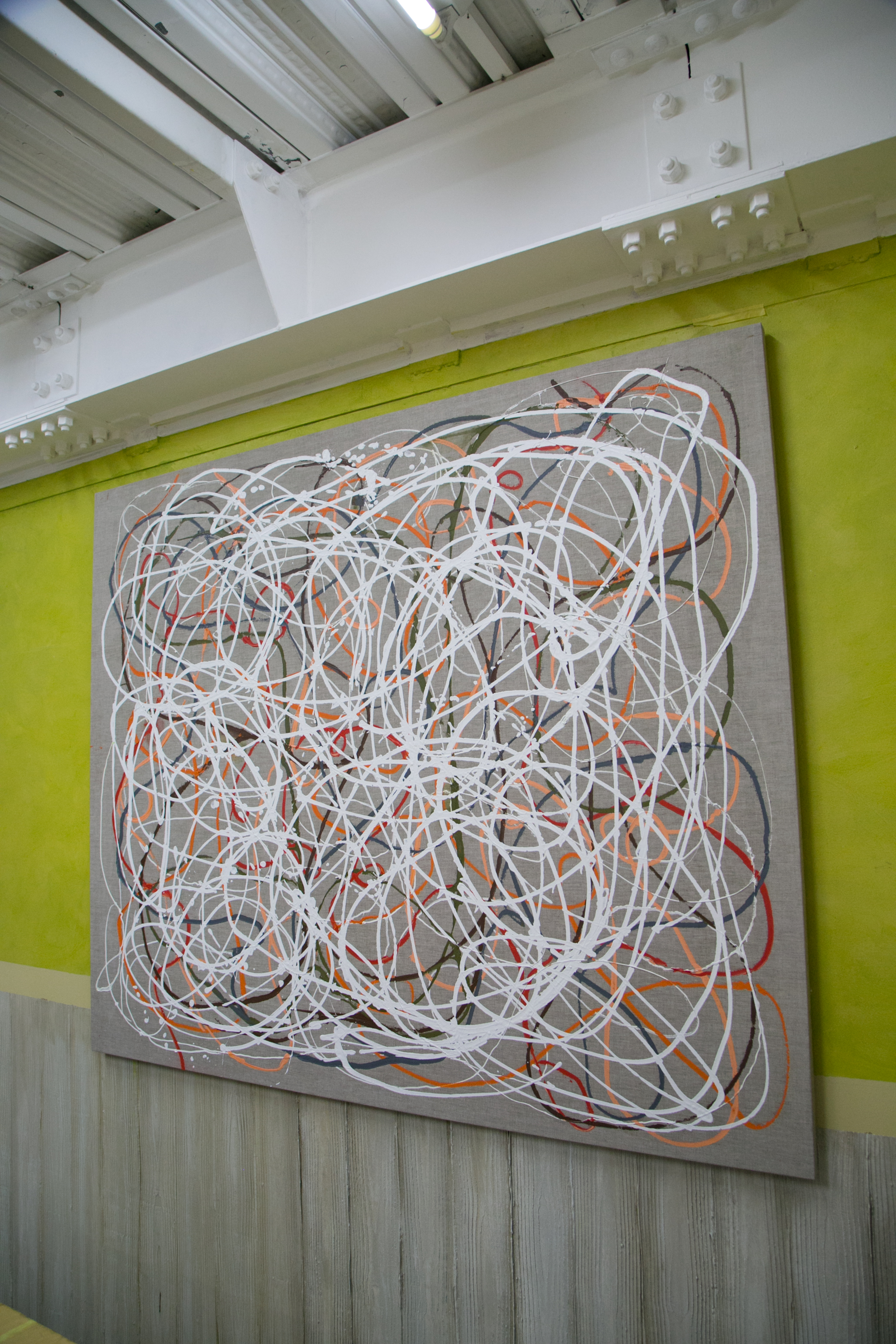 | NO.item | 20170509-04 | Statement/note 新宿髙島屋1Fの天井画に描いた時に出来たシリーズ「つなぐ」。 今までは絵具の中に存在していたラインが今度は画面にとびだすように描かれた。 麻キャンバスの上に、チューブから直接出した絵具で、立体感や躍動感のあるラインを描いている。 制作年→2017年 |