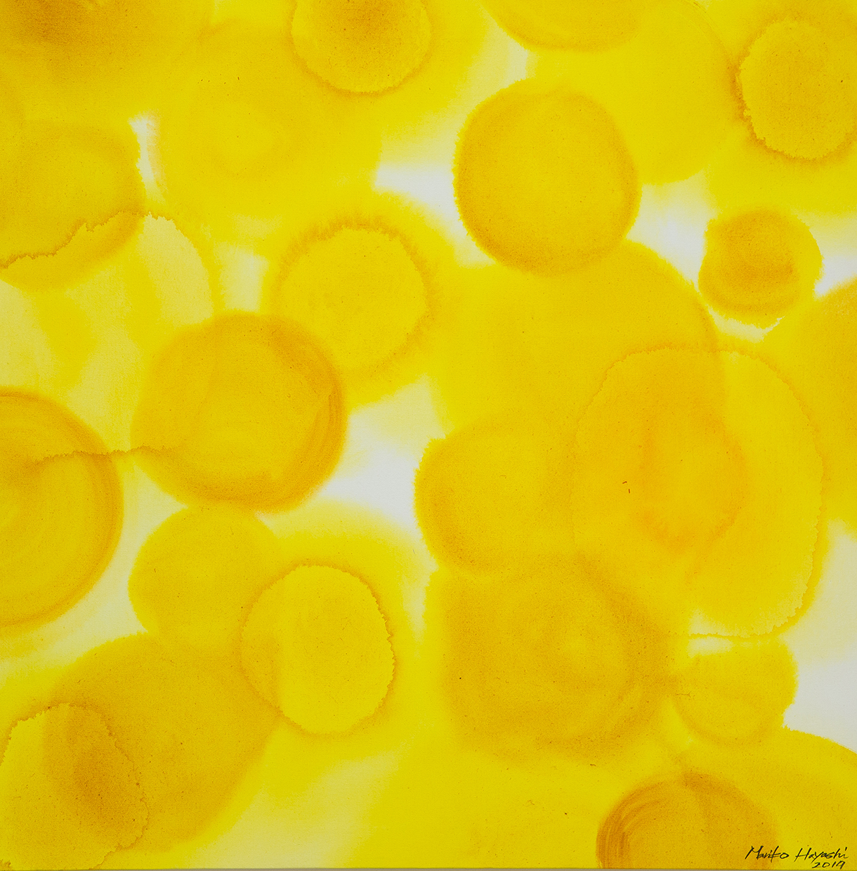 | NO.item | 20190109-20 | Statement/note Art Gallery Cafe 茶々華 人気の花*花シリーズ。 透明度が高い画材で何層にも描き、透明感のある花をイメージした円形のものが幾重にも奥行きをなして存在する作品。 |